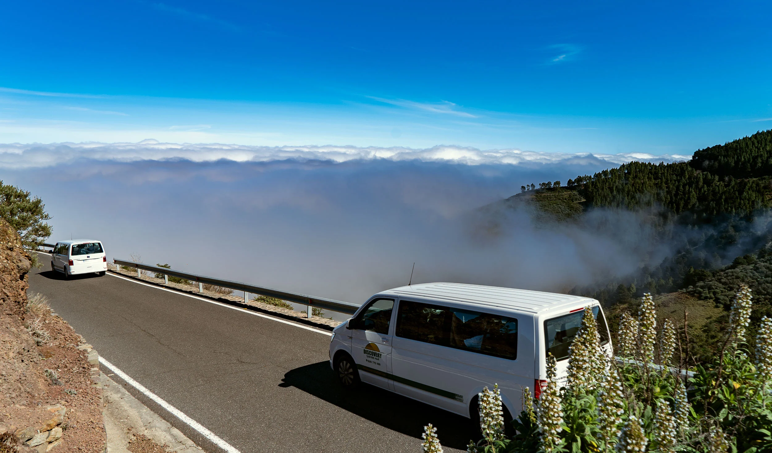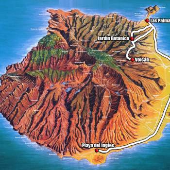Después se dirigen hacia Fontanales para almorzar (opcional). Tras el almuerzo, se continúa la ruta descendiendo por el bello camino de Moya hacia la costa norte de la isla, donde se puede ver las plantaciones de plataneras. Después de un última parada en la costa norte, pasando por la Avenida Marítima, se dirigen hacia el sur de la isla.