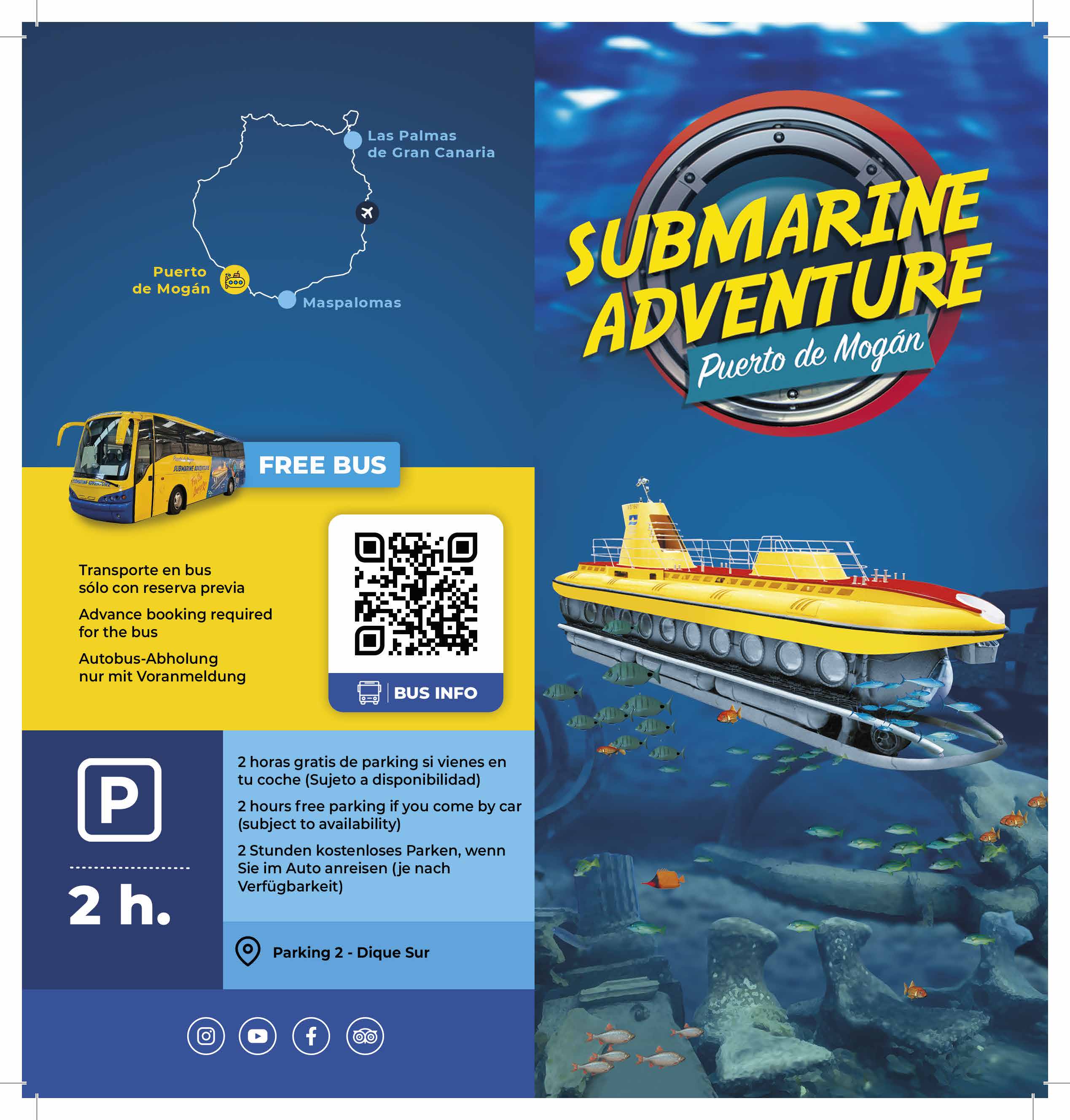 Adultos Niños Todos los días Descubra los fondos marinos del sur de la isla en una excursión de mediodía a Puerto de Mogán y embárquese a bordo de un auténtico submarino.